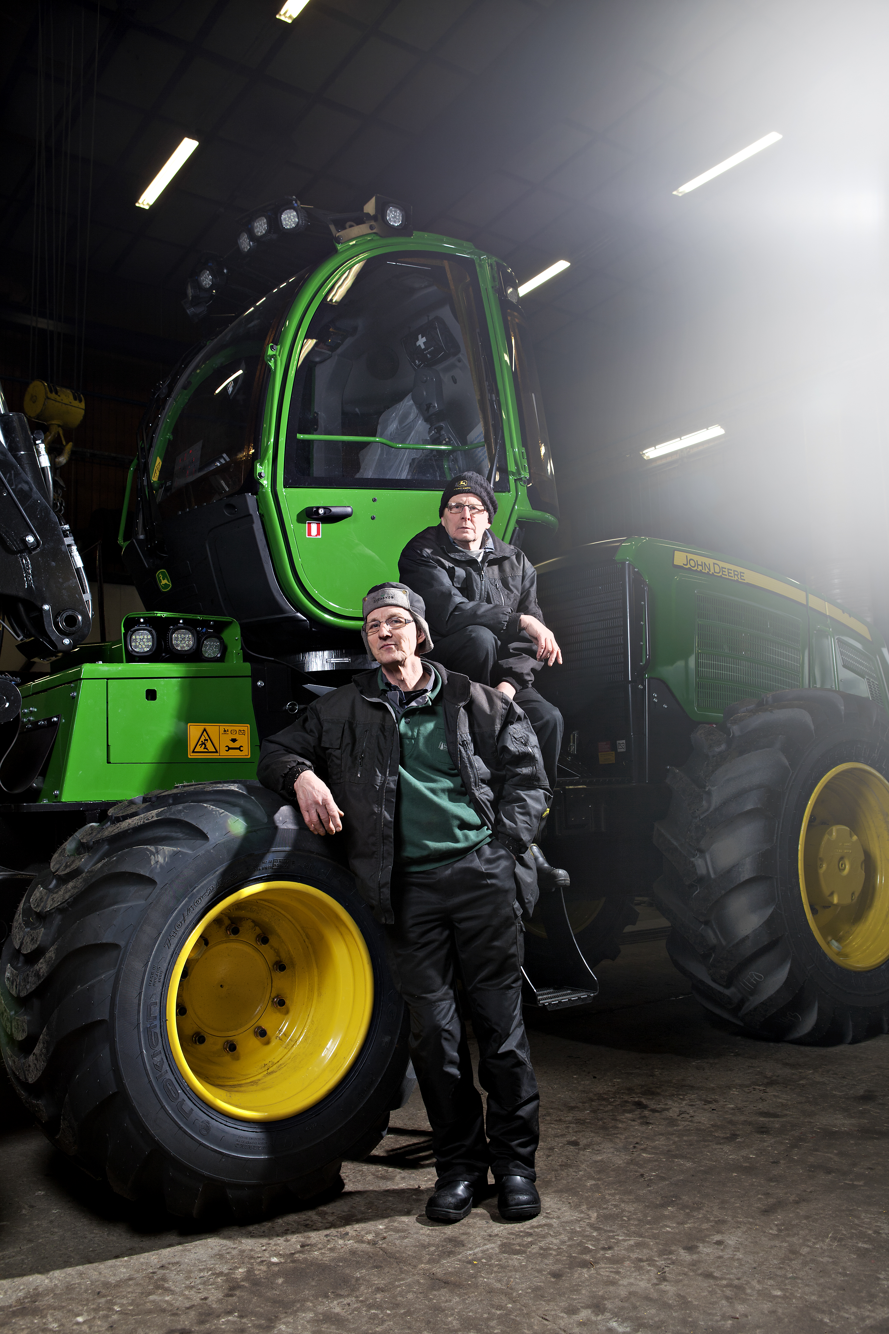 - Beskrivning: Tommy Isaksson och Håkan Isaksson, entreprenör och delägare i Isakssons terrängtransport i Överkalix. Skördare John Deere 1170 E.