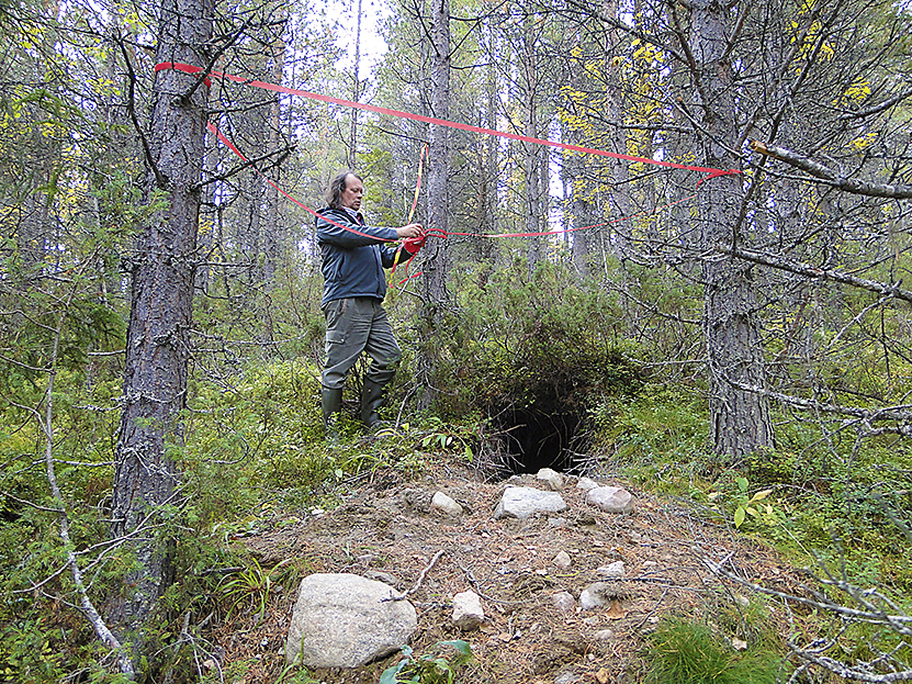 - Beskrivning: Ett björnide spärras av vid avverkning. Avverkningen kom senare att bli den nya skidnedfarten Långe David i Kåbdalis.