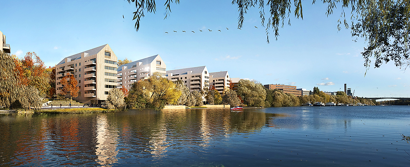 - Beskrivning: Trähus ritade av Wingårdh Arkitektkontor. Folkhems sexvåningshus i trä som byggs i Strandparken i Sundbyberg utanför Stockholm. Träbyggnation.