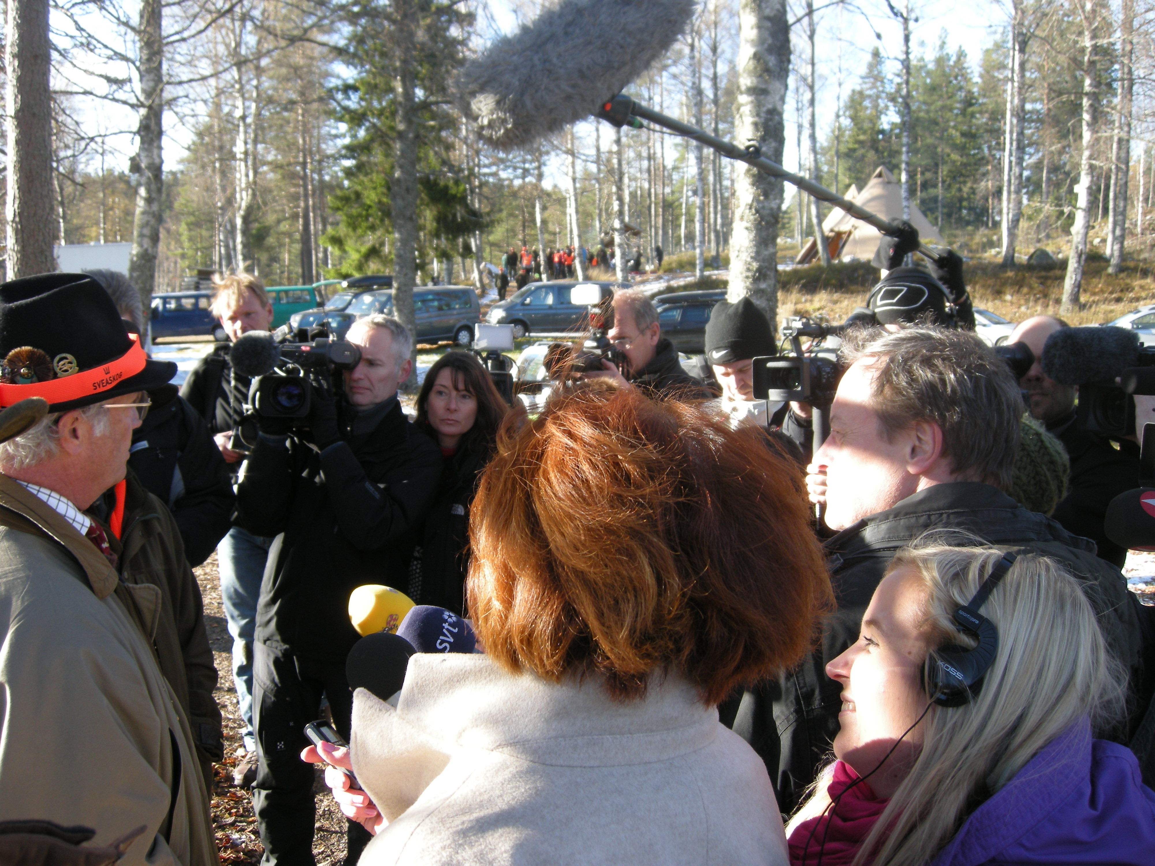 - Beskrivning: Kungen och de 18 älgarna, Den 22 oktober arrangerade Sveaskog traditionsenligt den Kungliga jakten i Kloten i Bergslagen, kungen omringad av reportrar
