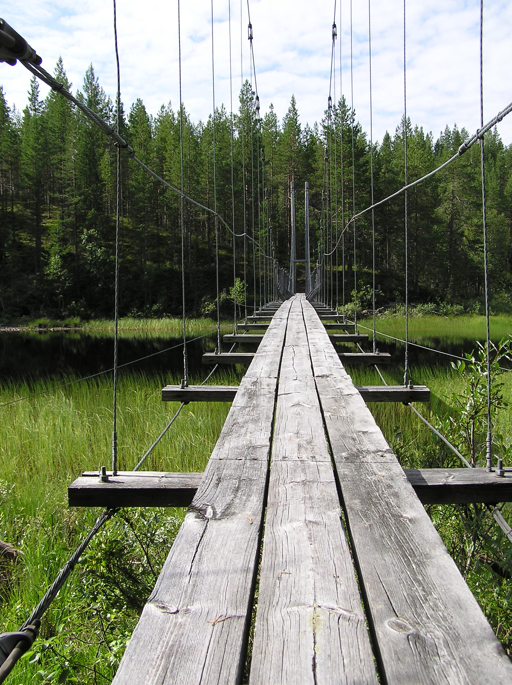 - Beskrivning: Hängbro, natur, plankor, brädor