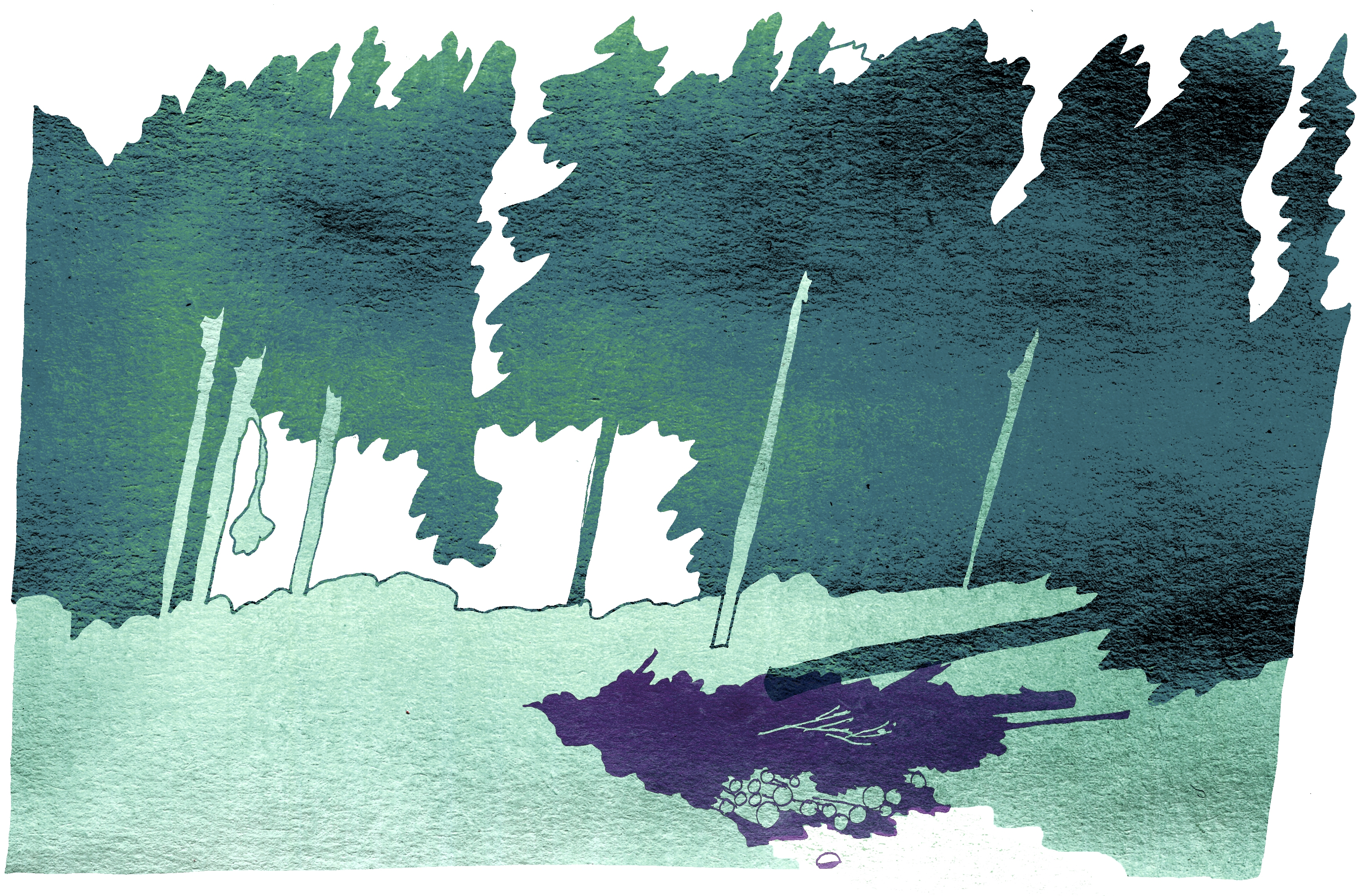 - Beskrivning: Spårlöst skogsbruk, akvarellbild som finns i några olika varianter, illustration, målning, vattenfärg