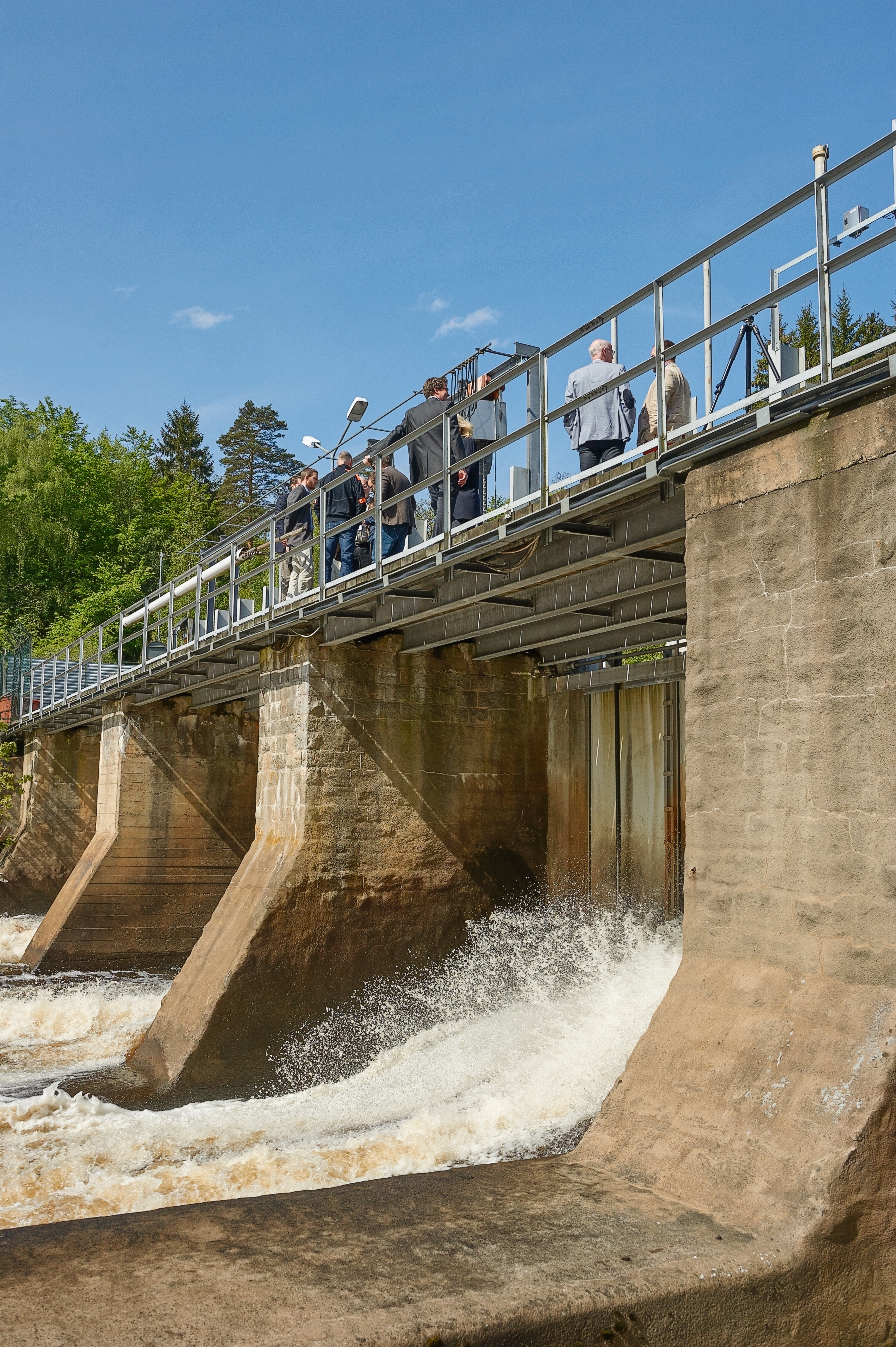 - Beskrivning: Presskonferens, pressmöte i Svängsta angående rivningen av Marieberg, damm, dammbyggnad