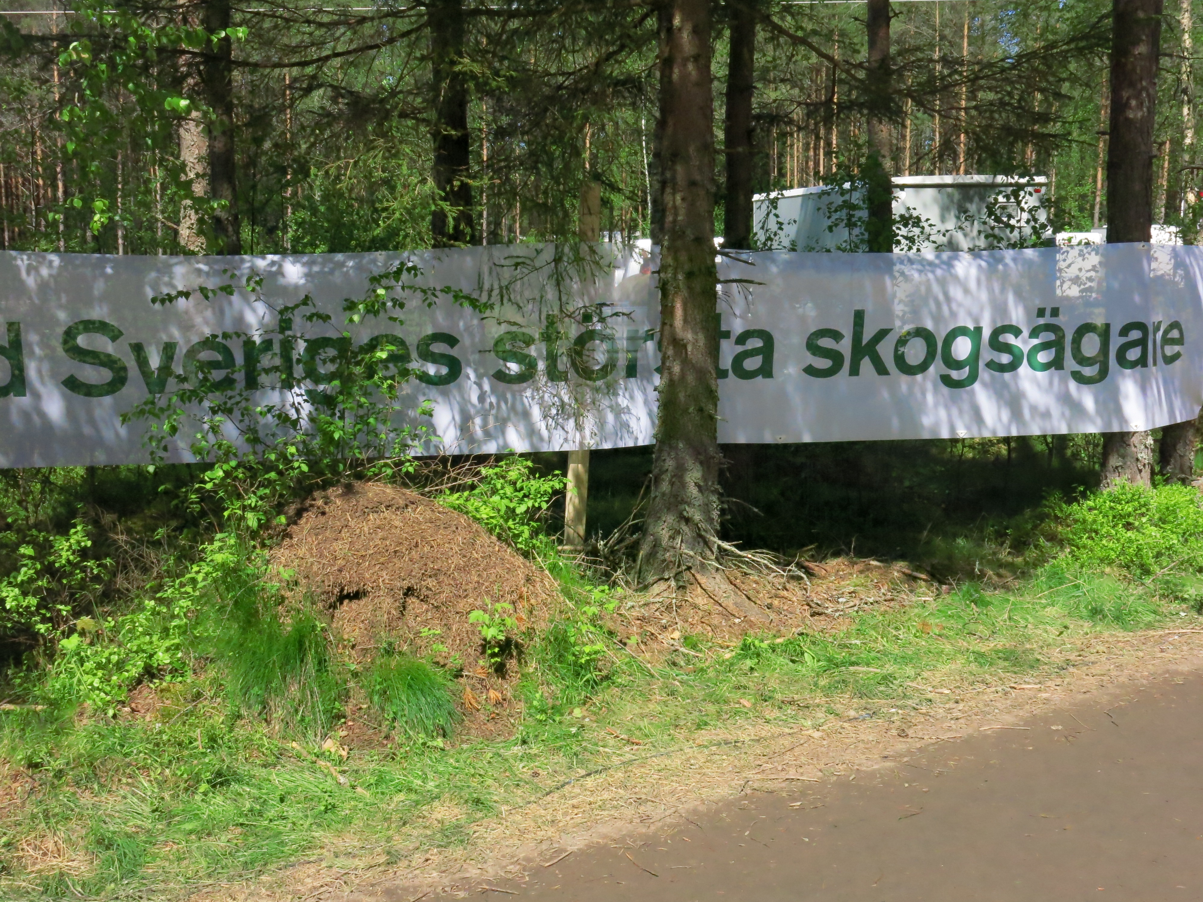 - Beskrivning: Sveaskog på SkogsElmia, skogsmässa, jönköping, marknadsföring, utanför montern, Sveriges största skogsägare, skylt, banner