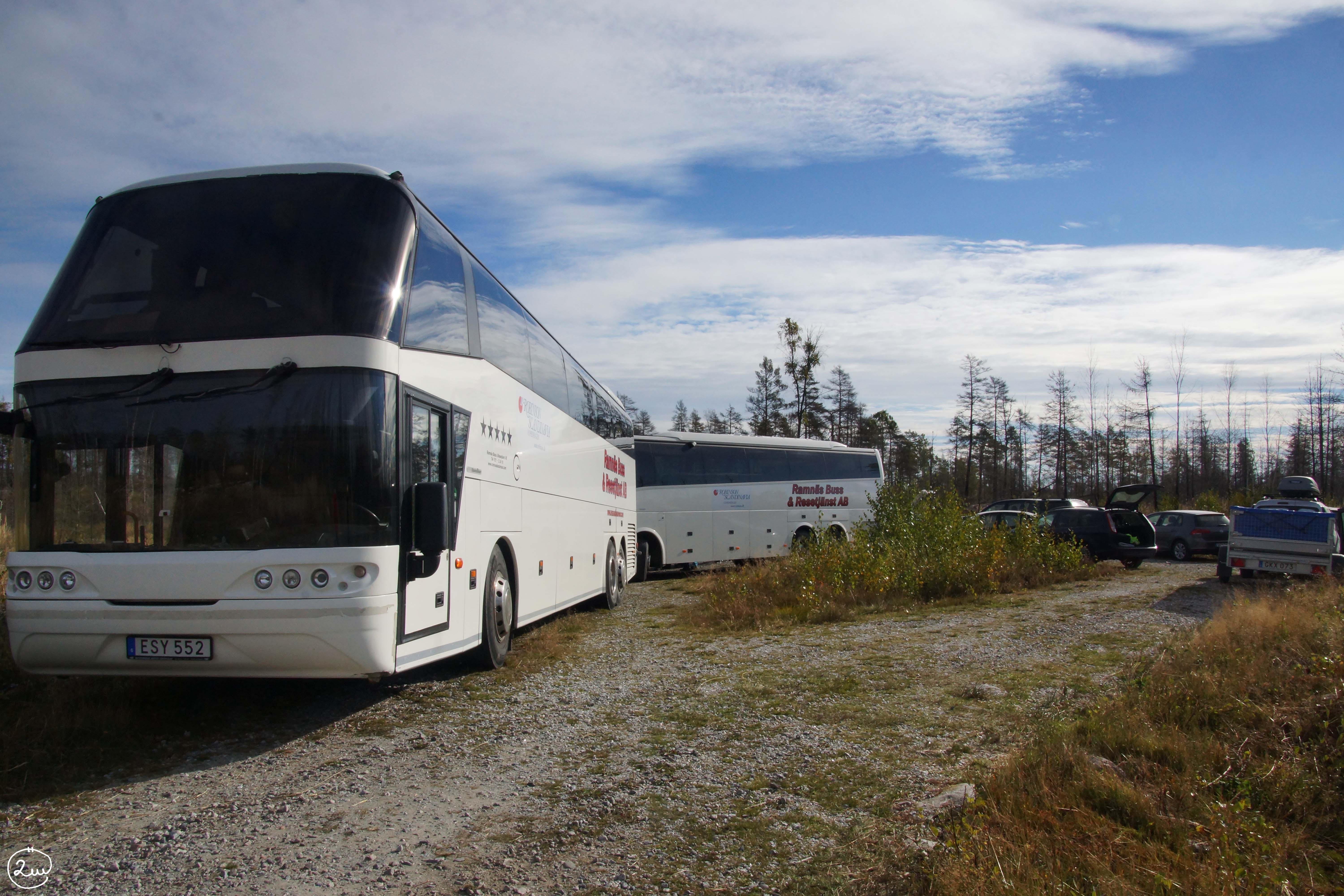 - Beskrivning: Buss som skjusat besökare till Invigningen av Ekopark Öjesjöbrännan, vår 37:e ekopark, branddynamikens ekopark