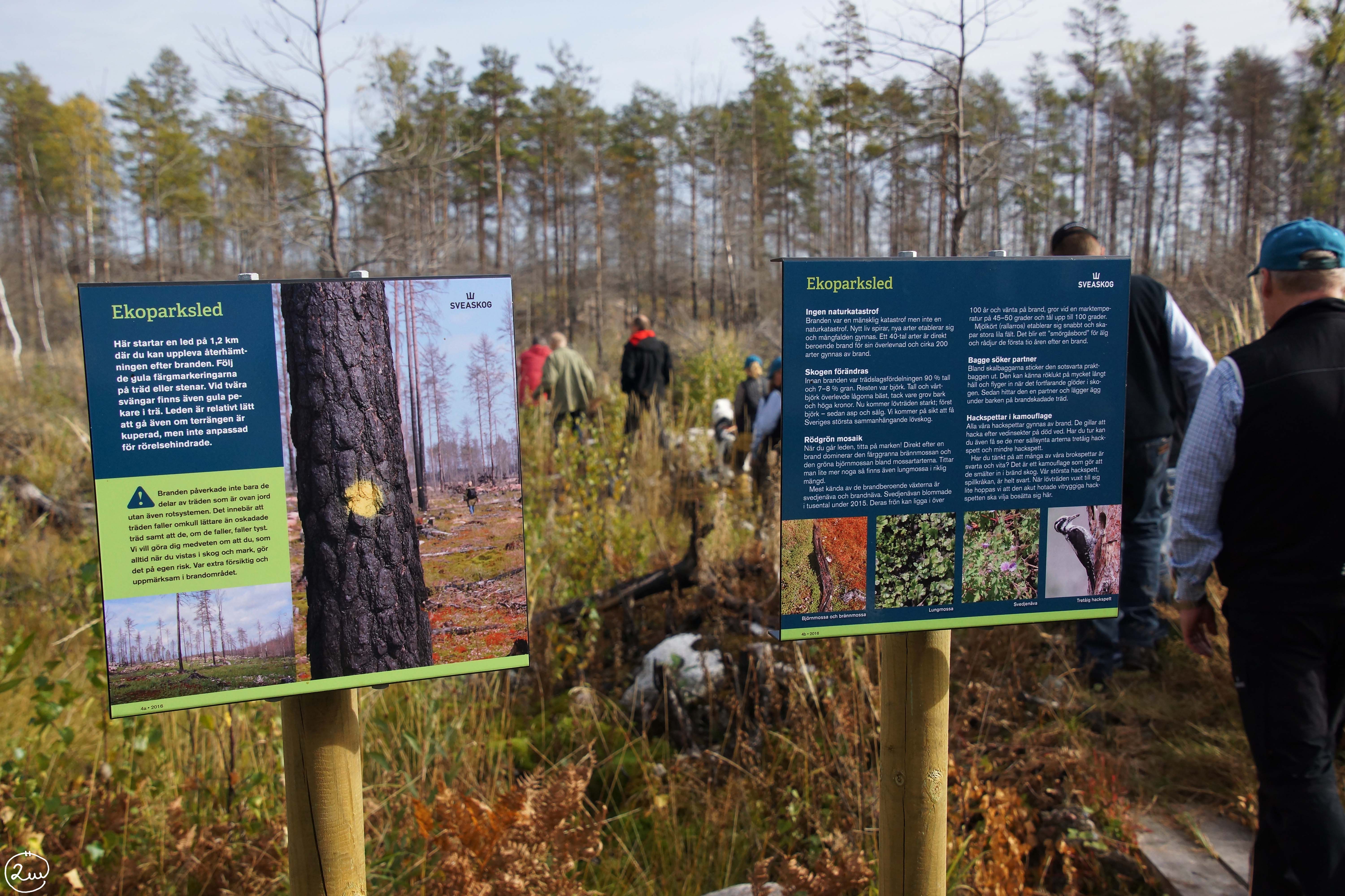 - Beskrivning: skylt, informaiton, led, Invigning av Ekopark Öjesjöbrännan, vår 37:e ekopark, branddynamikens ekopark