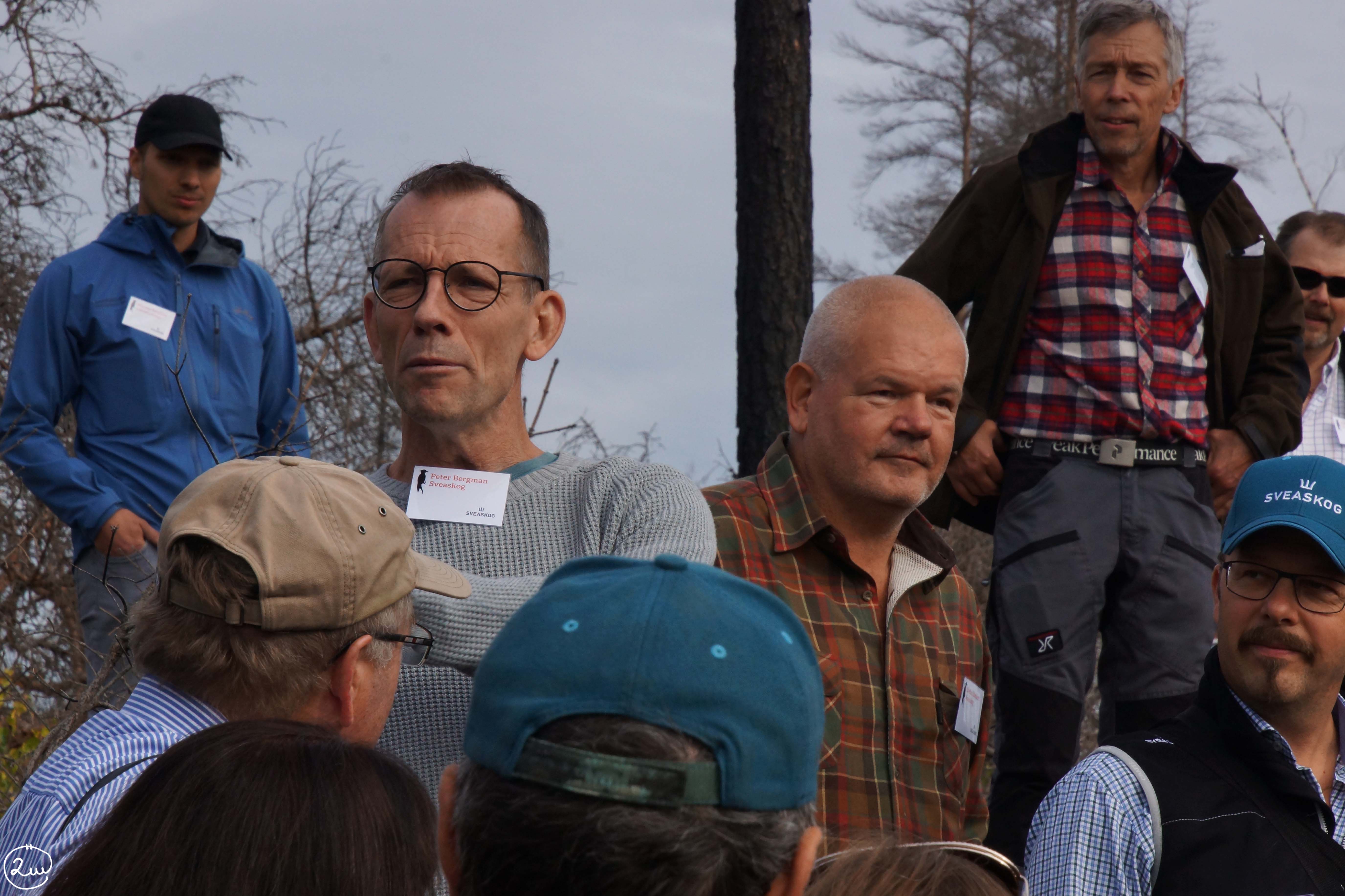 • Beskrivning: Peter Bergman och Stefan Bleckert och andra besökare, Invigning av Ekopark Öjesjöbrännan, vår 37:e ekopark, branddynamikens ekopark