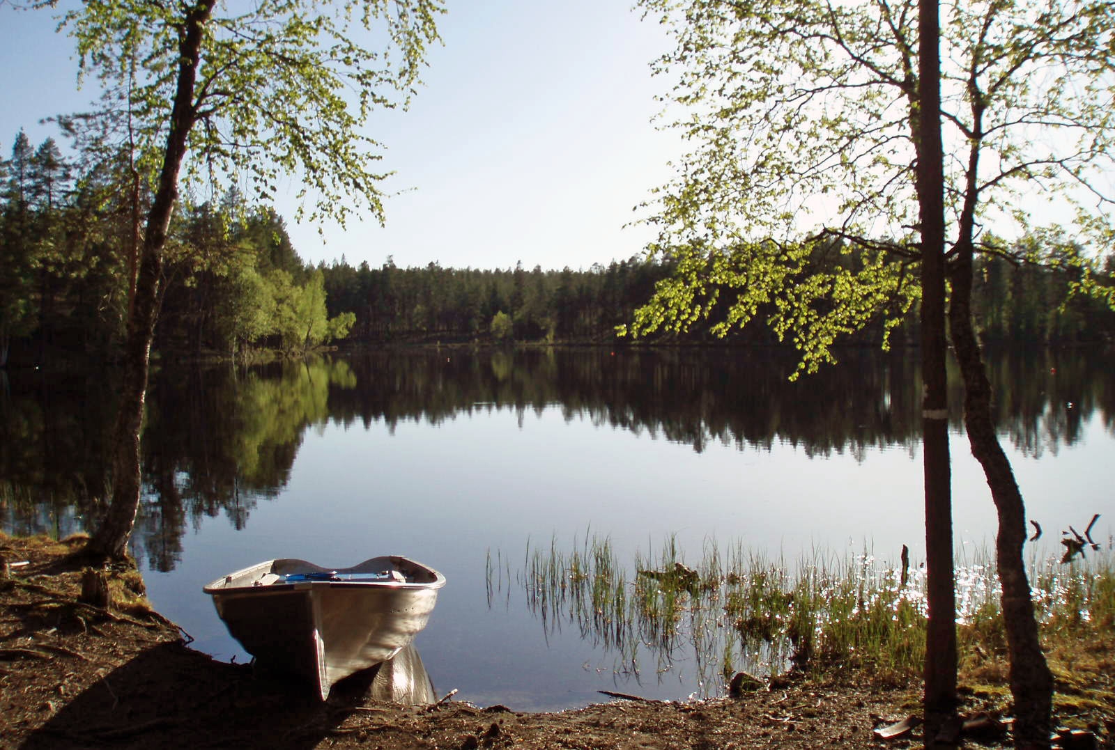• Beskrivning: En båt vid strandkanten i ekopark Skatan.