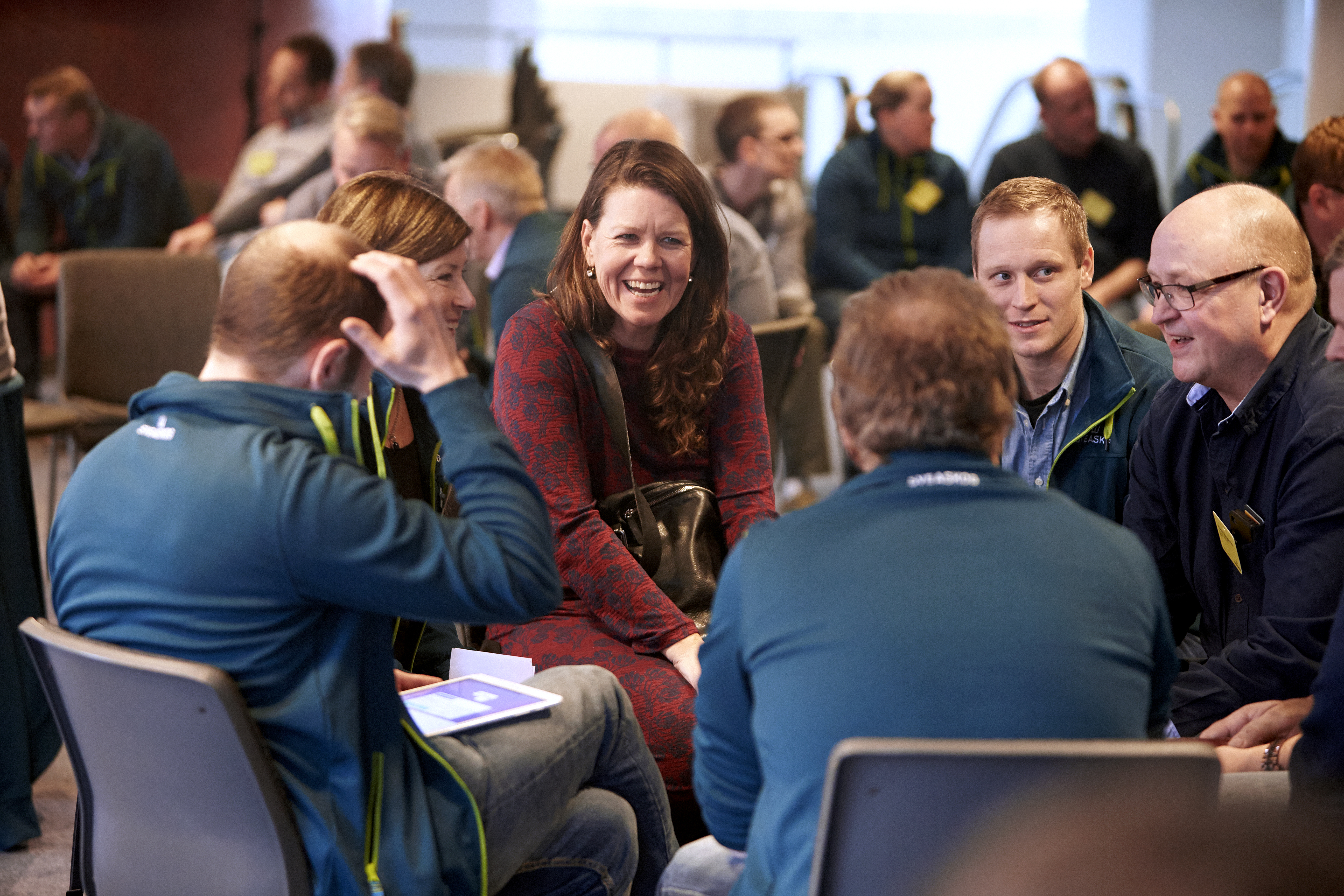 • Beskrivning: Anette Waara, dialog, skratt, samarbete, gemenskap, Sveaskogsdagarna 2017, dialog, möte, hela företaget samlat, expo