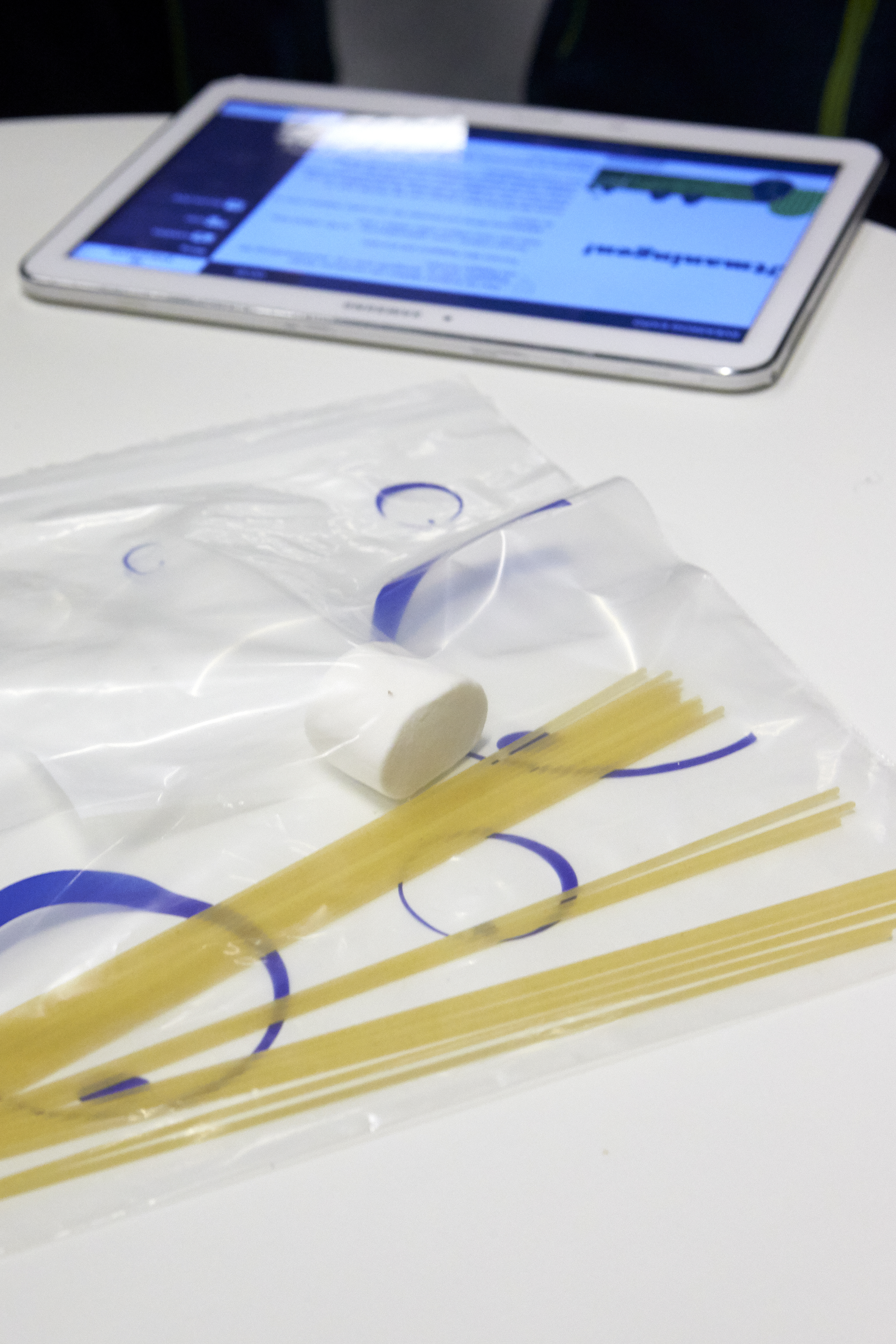 - Beskrivning: Station, uppgift, bygga med spaghetti, hållbarhet, gruppövning, team building, Sveaskogsdagarna 2017, dialog, möte, hela företaget samlat, expo