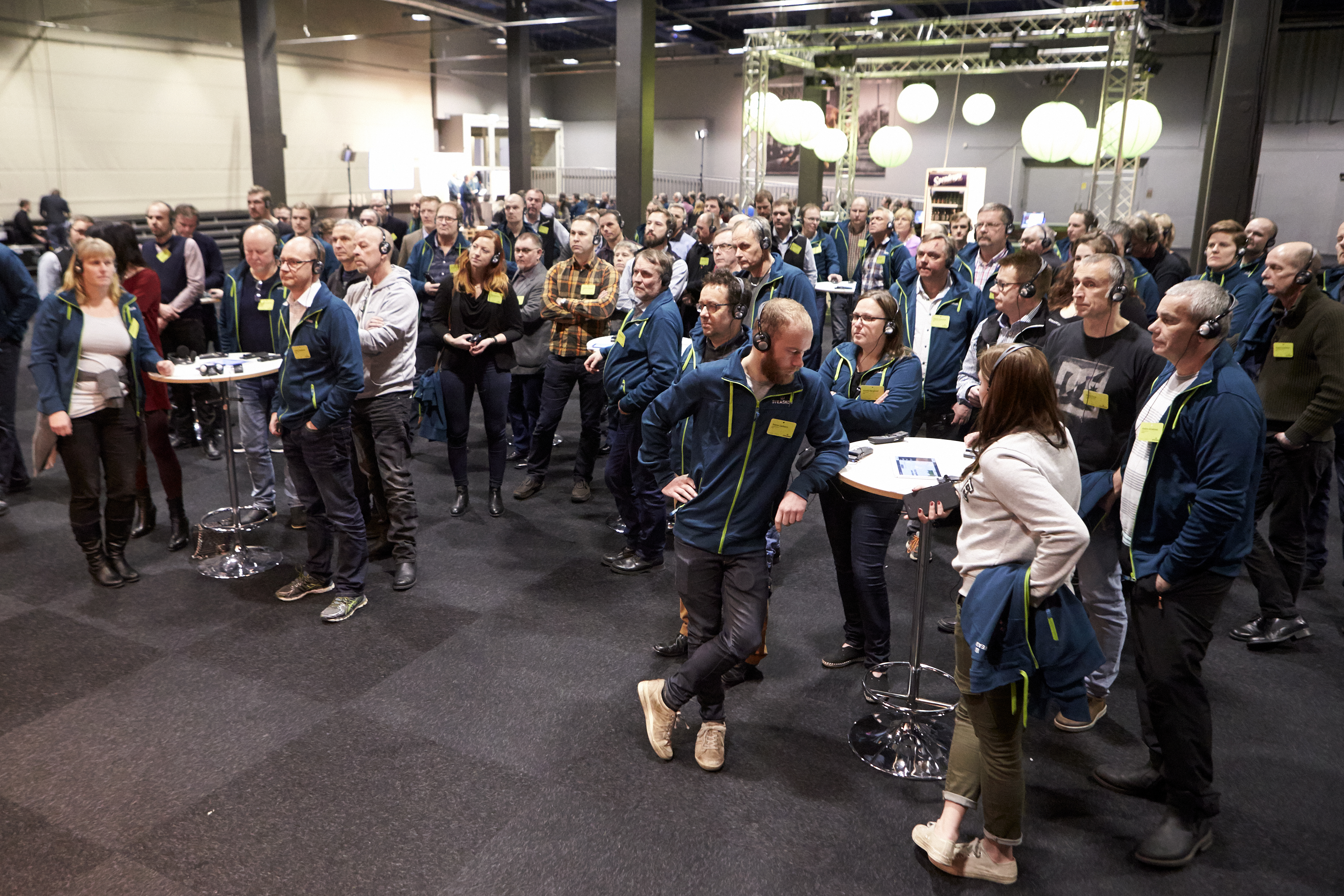 • Beskrivning: Ståbord, hörlurar, Sveaskogsdagarna 2017, dialog, möte, hela företaget samlat, expo, station