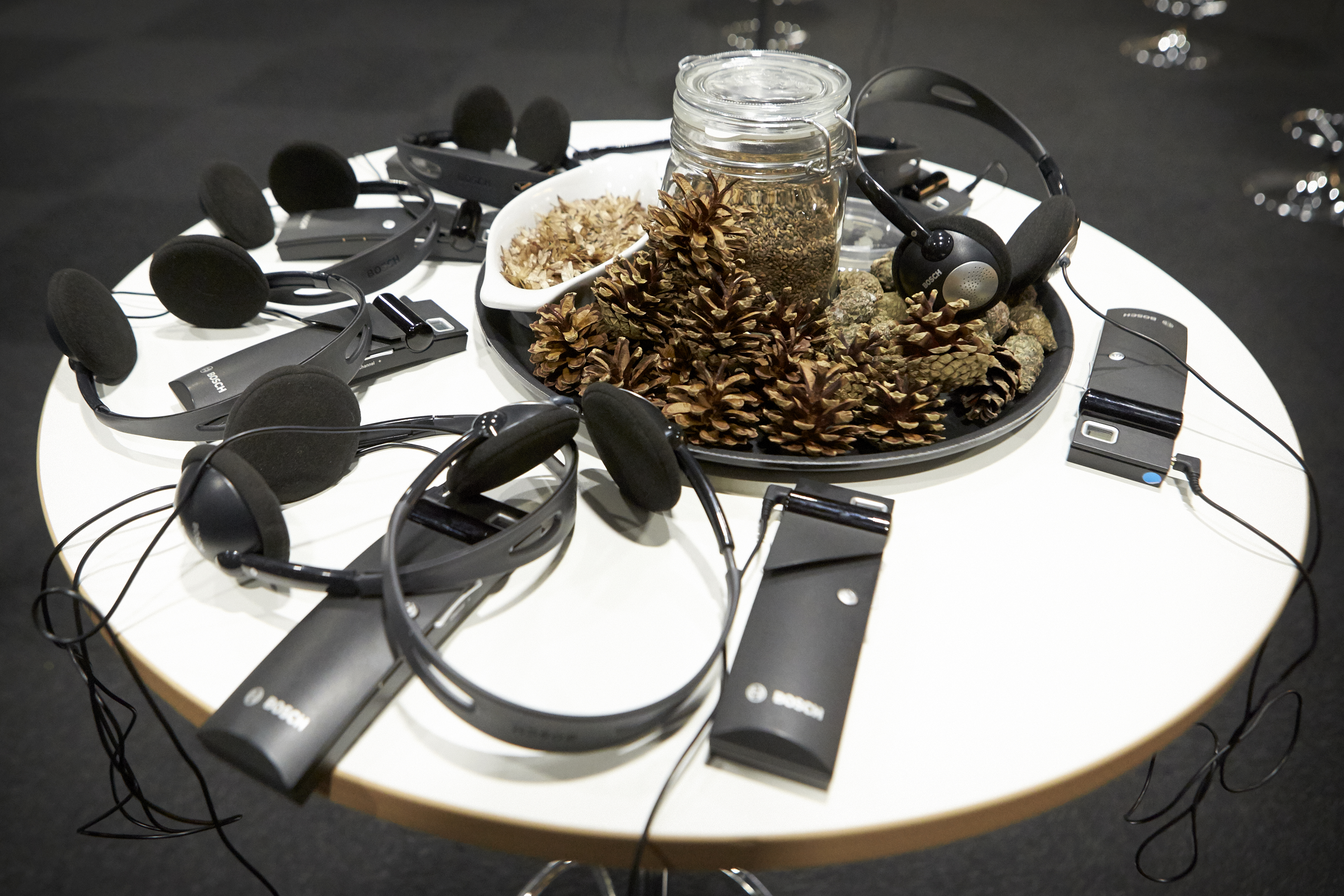 - Beskrivning: Kottar, program, hörlurar, övning, Sveaskogsdagarna 2017, dialog, möte, hela företaget samlat, expo, station