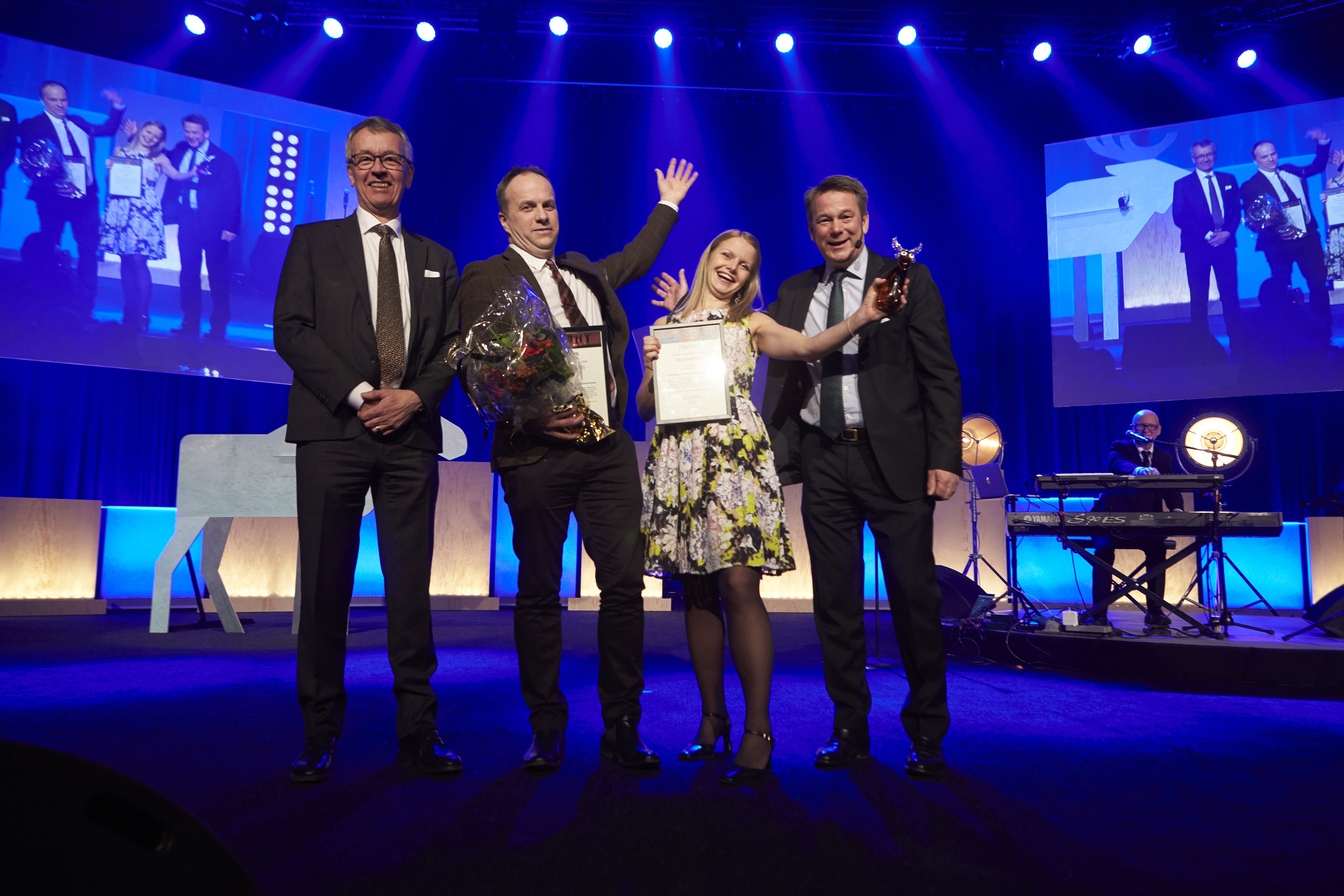 - Beskrivning: vd Per-Olof Wedin, Anna Ahlin och Anders Sjösvärd, vinnare i kategorin Innovation för "Utveckling av Sveaskogs integrationsarbete" och Per Matses, Sveaskogsdagarna 2017, dialog, möte, hela företaget samlat, expo