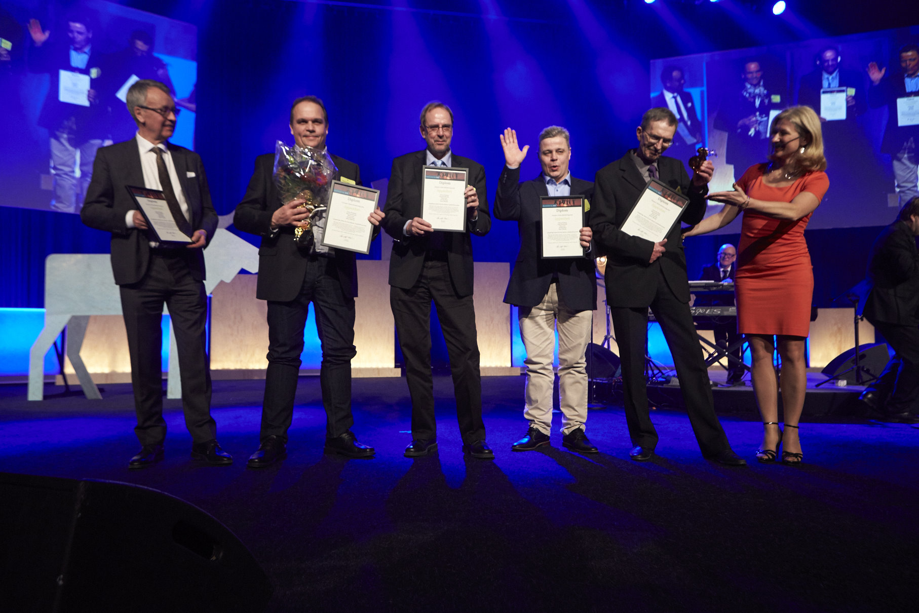 • Beskrivning: Maskinlag 5484 Riddarhyttelaget, vinnare i kategorin Öppenhet för "​Långsiktigt arbete för återväxten i maskinföraryrket", Sveaskogsdagarna 2017, dialog, möte, hela företaget samlat, expo