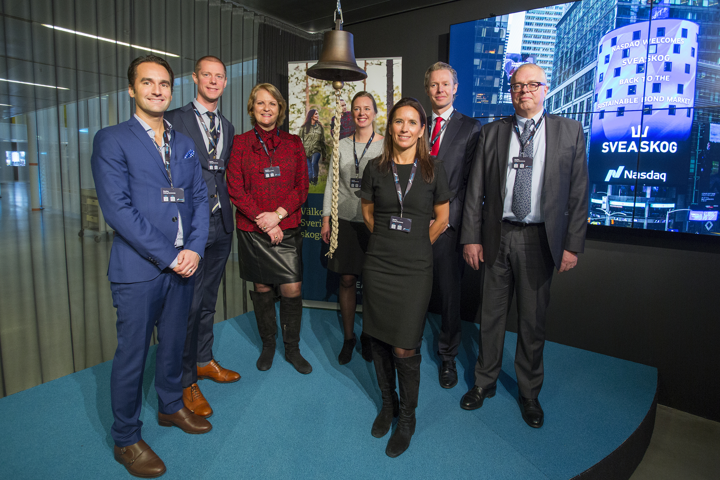 - Beskrivning: inringningen av Sveaskogs andra gröna obligation på Nasdaq den 27 oktober 2017, grön obligation