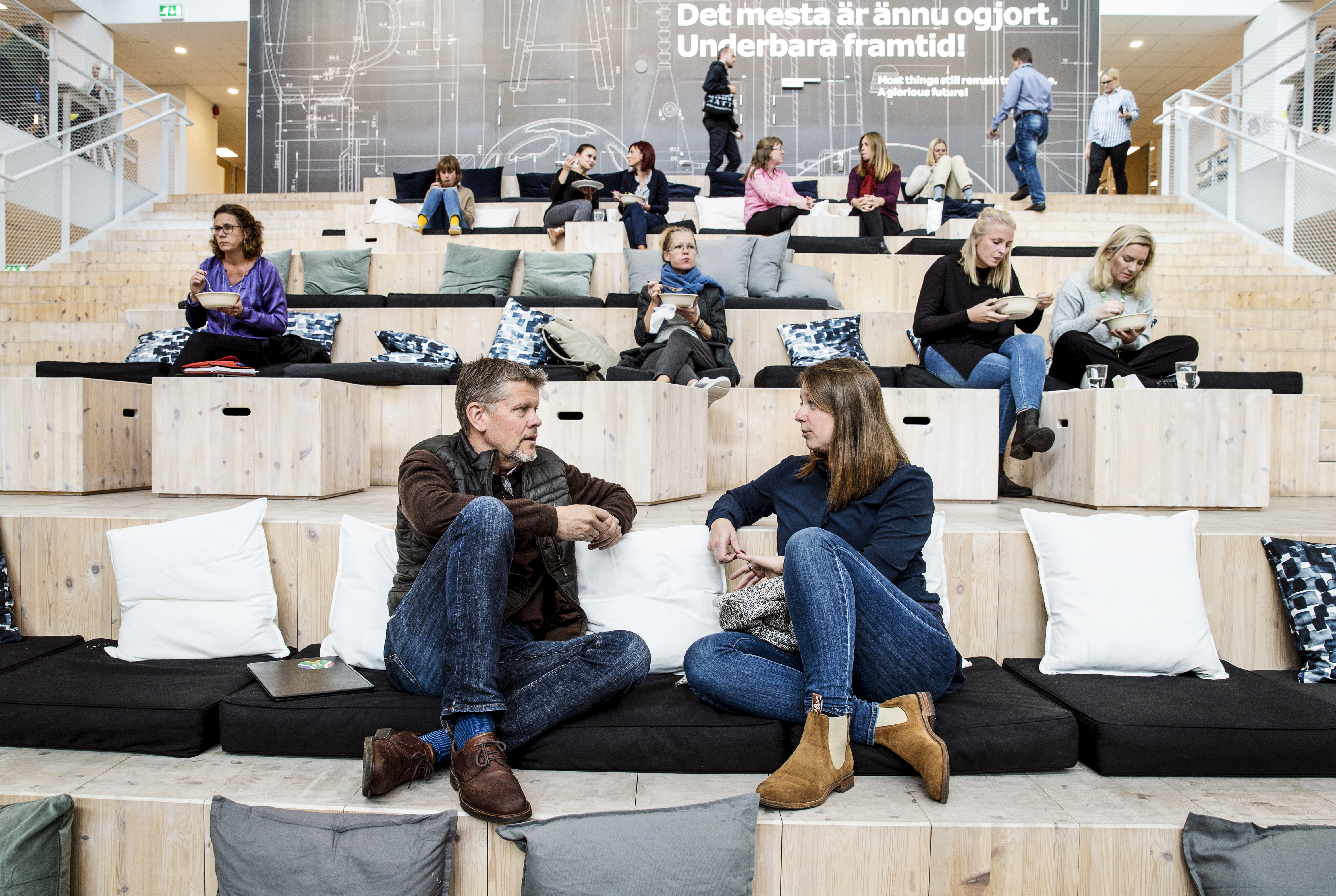 - Beskrivning: IKEA spanar över gränserna, Forum Sveaskog, hållbarhet, hållbarhetstänk, läktare, inredning, sittplatser