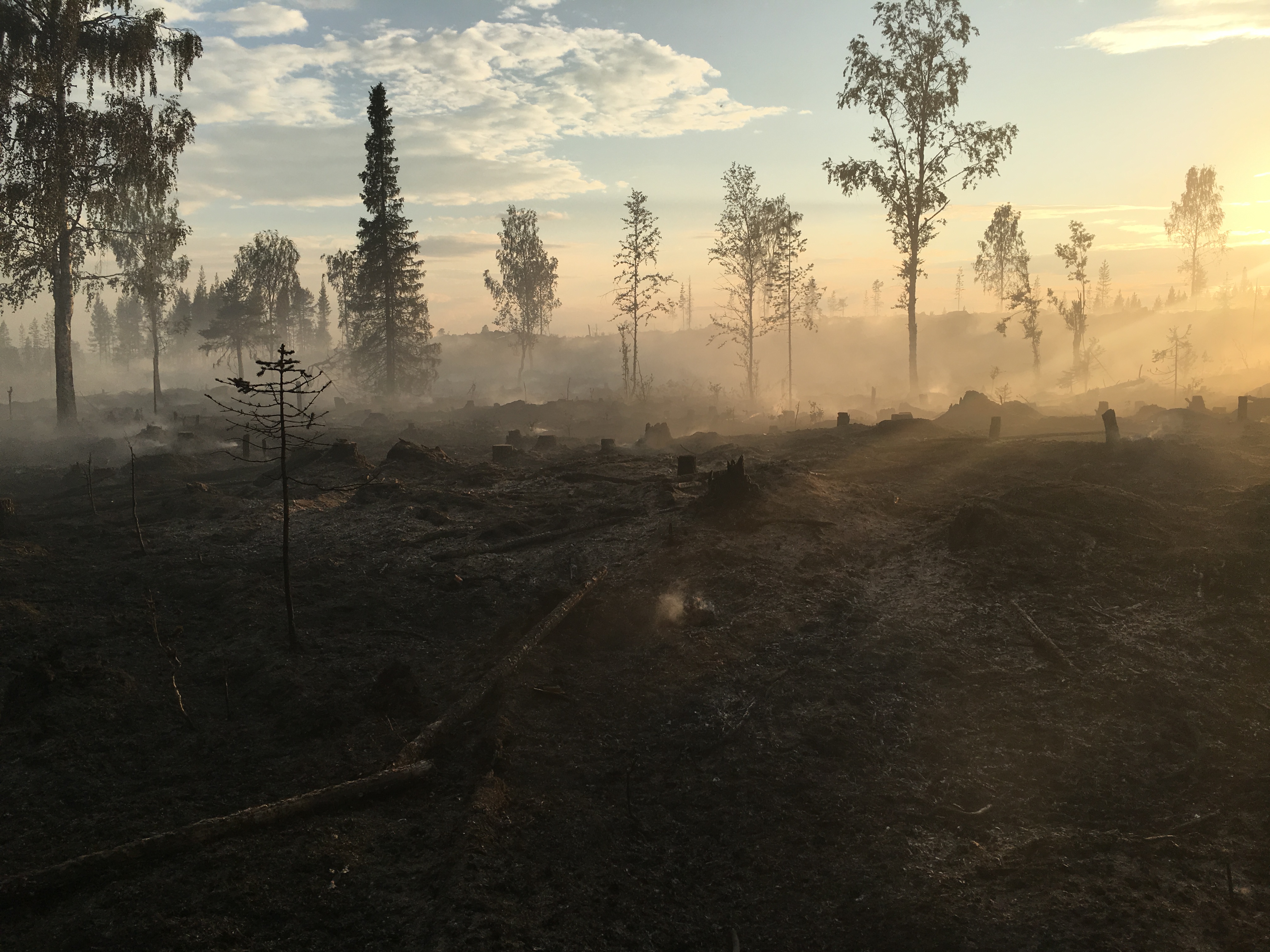- Beskrivning: Efter skogsbränderna 2018, skogsbrand, efter brand, Buktesberget, aska, rök, bedbränd skog