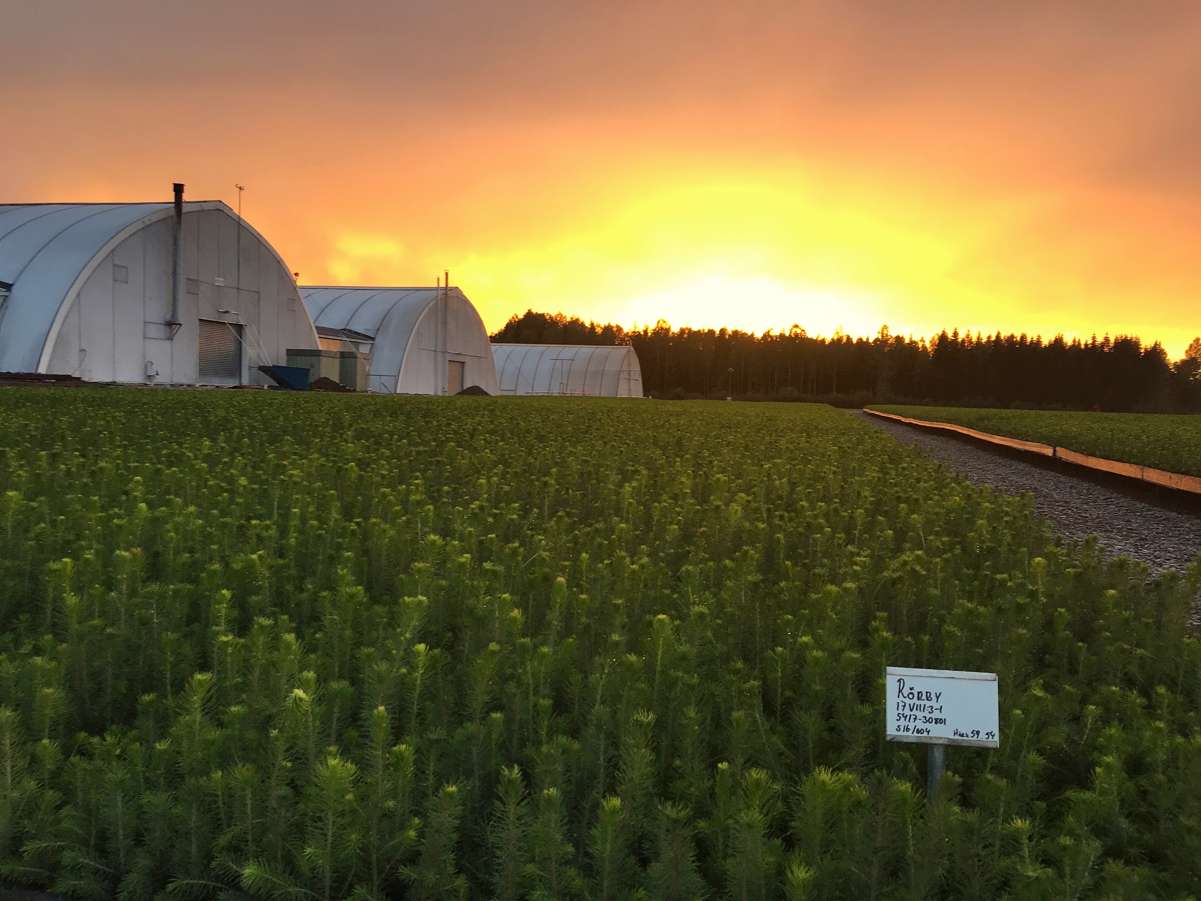 - Beskrivning: Vibytorps plantskola, plantskola, plantor, solnedgång, vackert, glödande himmel, växthus, plantage, bevattning