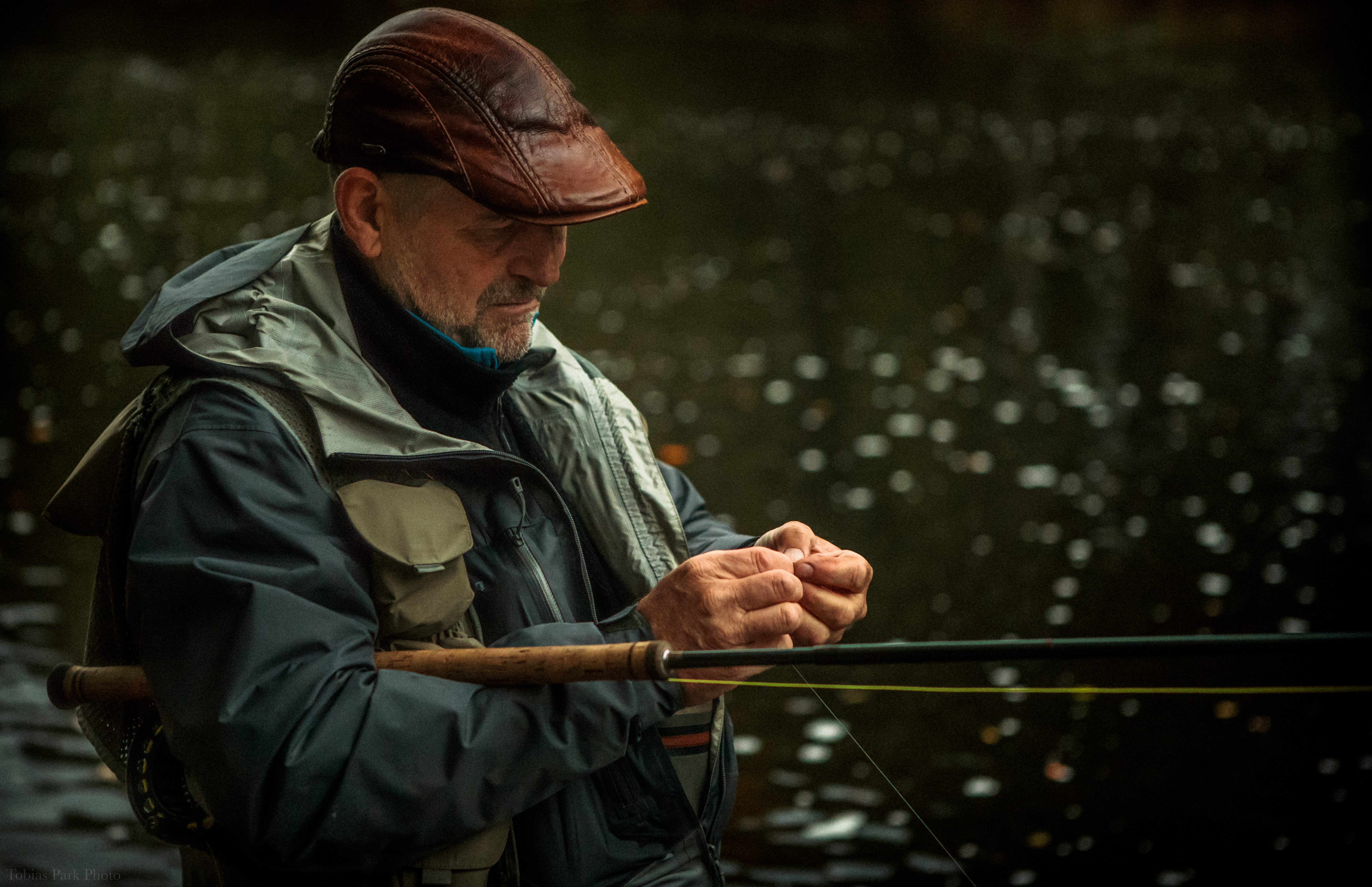 - Beskrivning: Fiskare fixar flugan