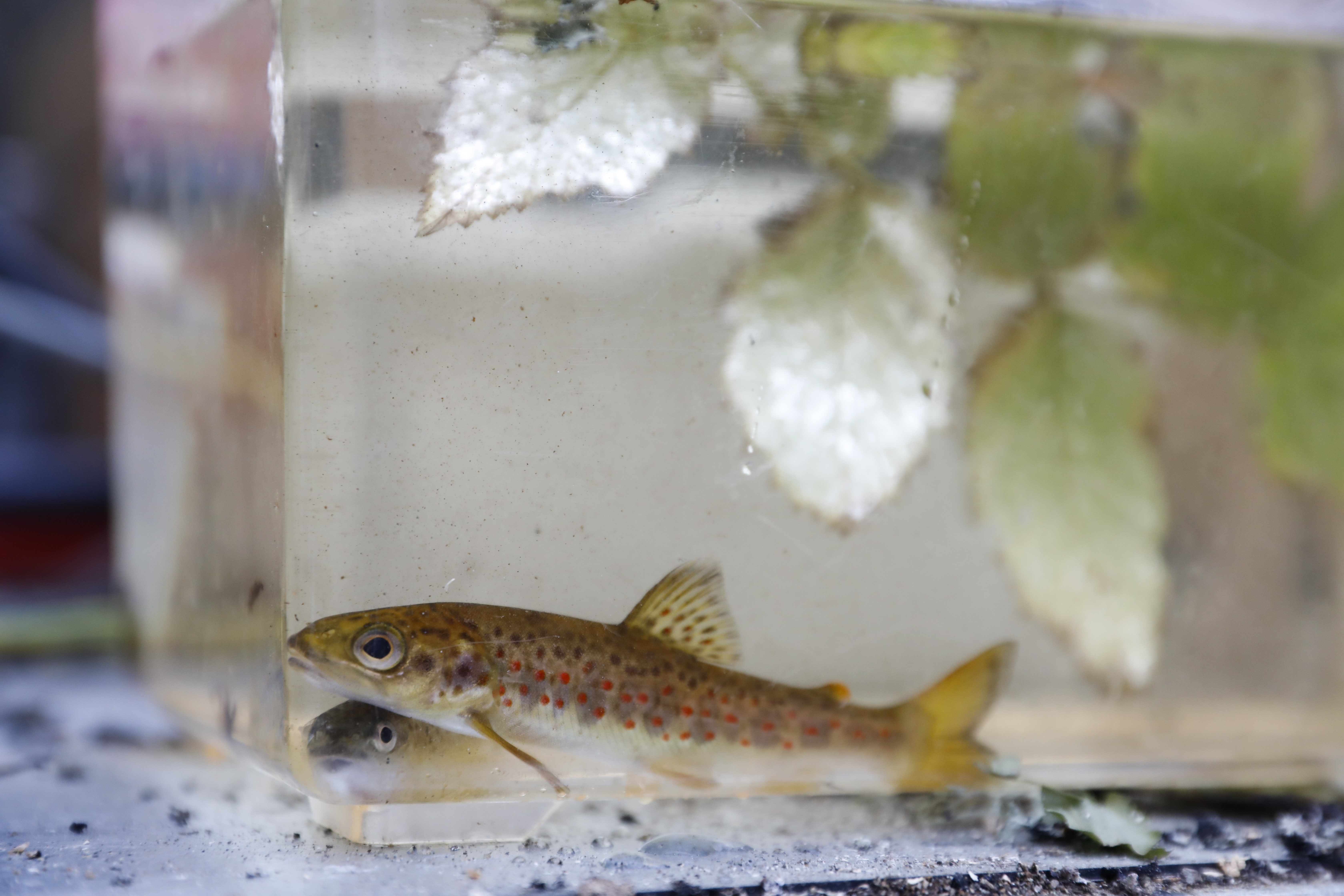 - Beskrivning: Infångad fisk för åldersbestämning. Fiskevårdslinjen och sjundeklassare i Mörrumsån