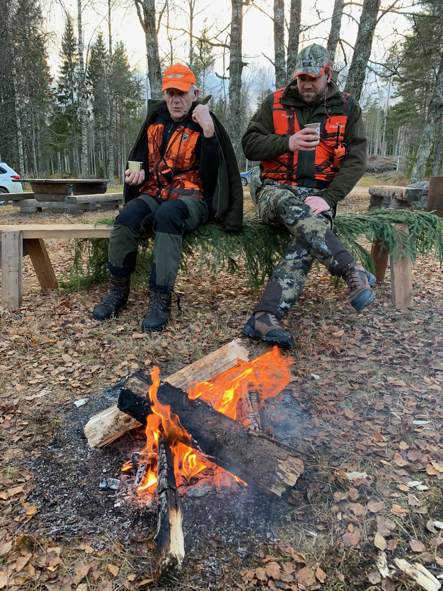 - Beskrivning: Jägare, paus, brasa, eld, kaffe