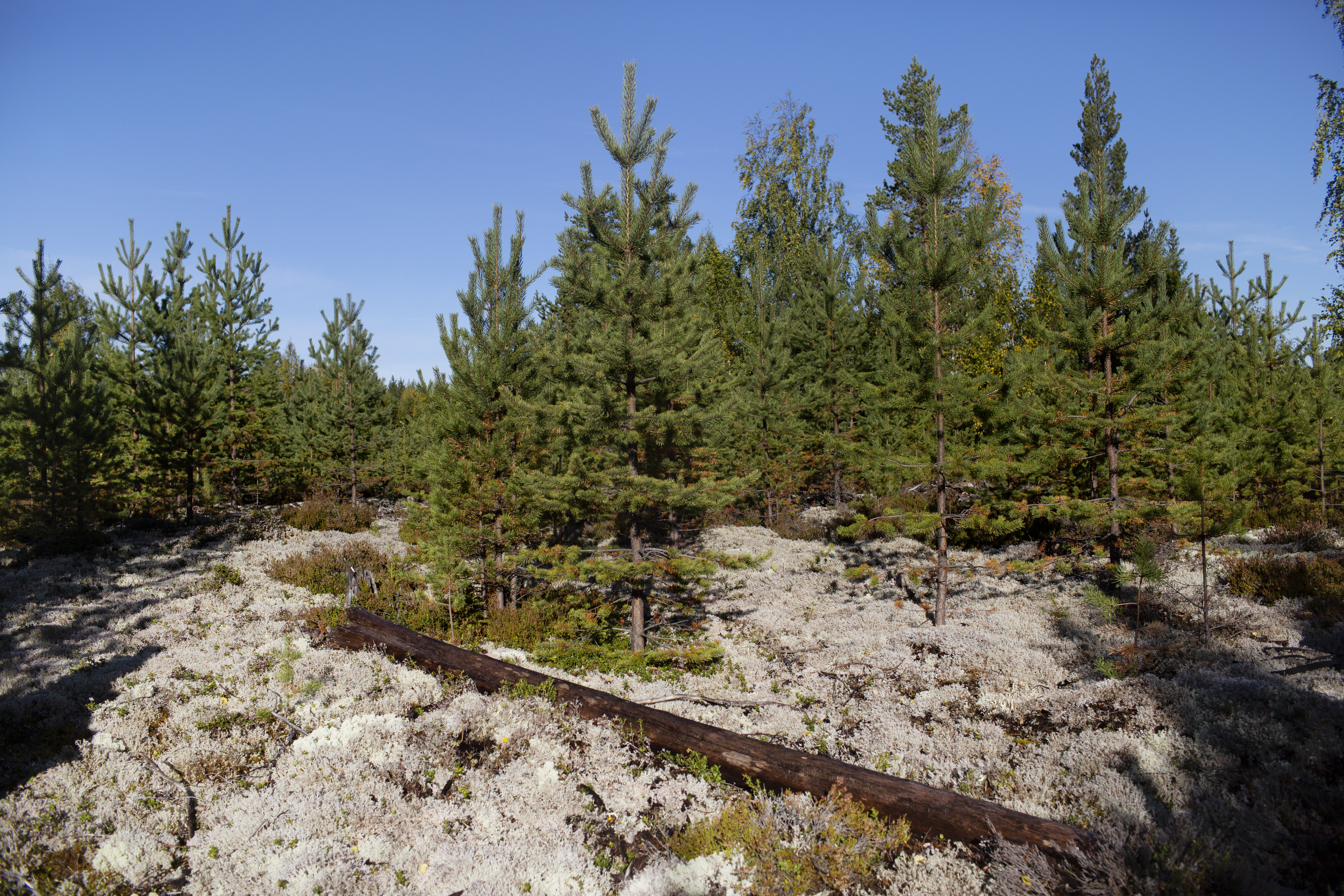 - Beskrivning: Renlav, fönsterlav, vitmossa, fönstermossa. Lavbeklädd tallhed. Här är skogen röjd och gallrad och laven får bra förutsättningar att återhämta sig när renar varit här och betat.
