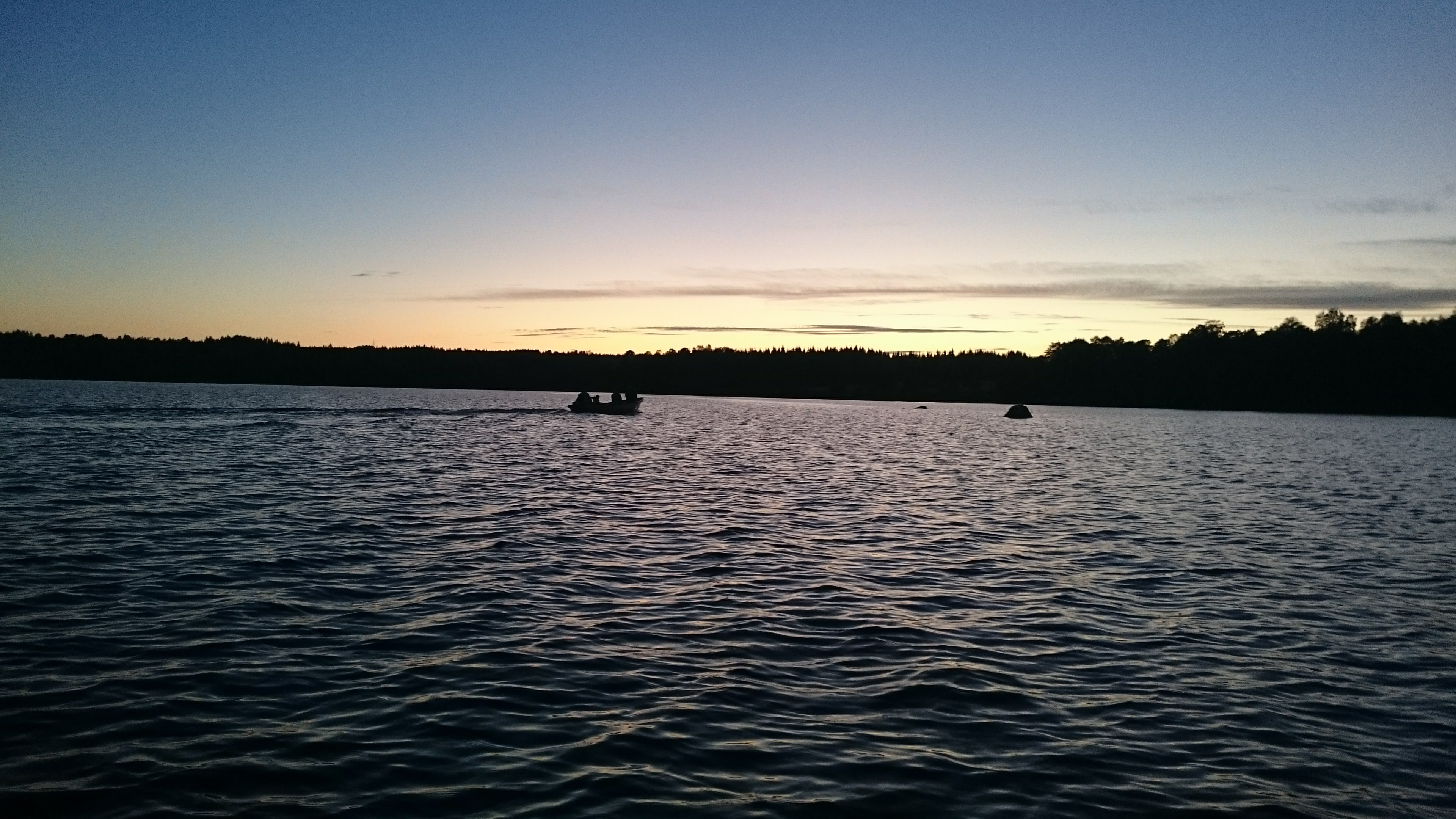- Beskrivning: Kräftfiske, båt, på Jogen