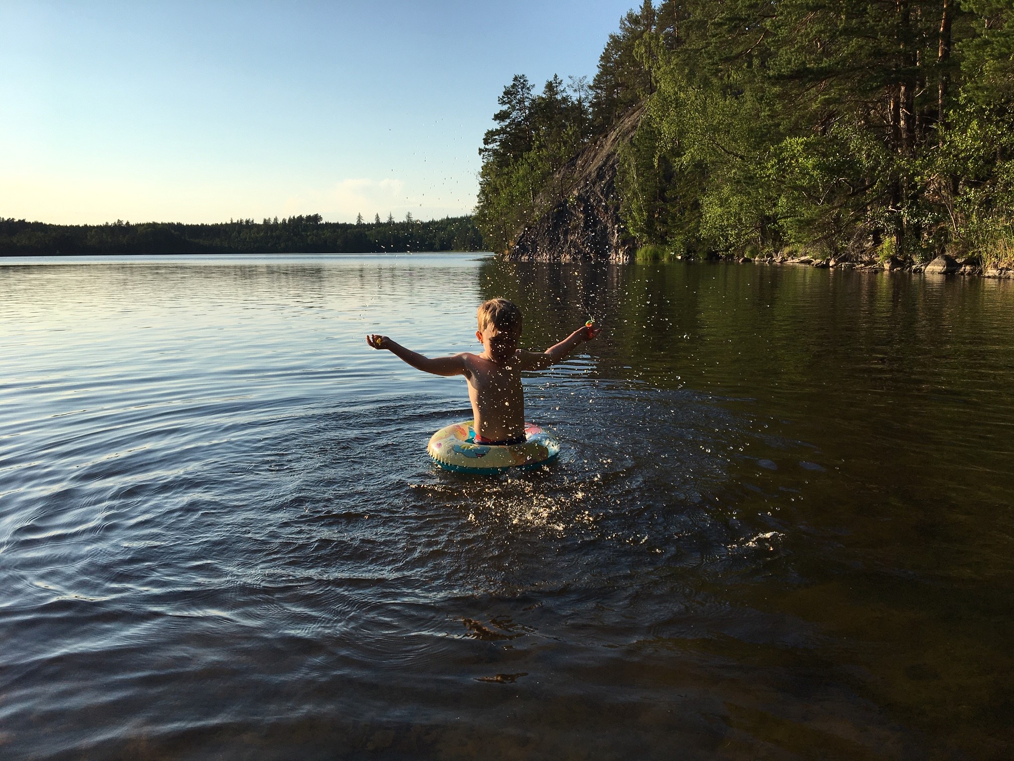 - Beskrivning: Bad i sjön Skiren, Åtvidaberg. Barn som badar