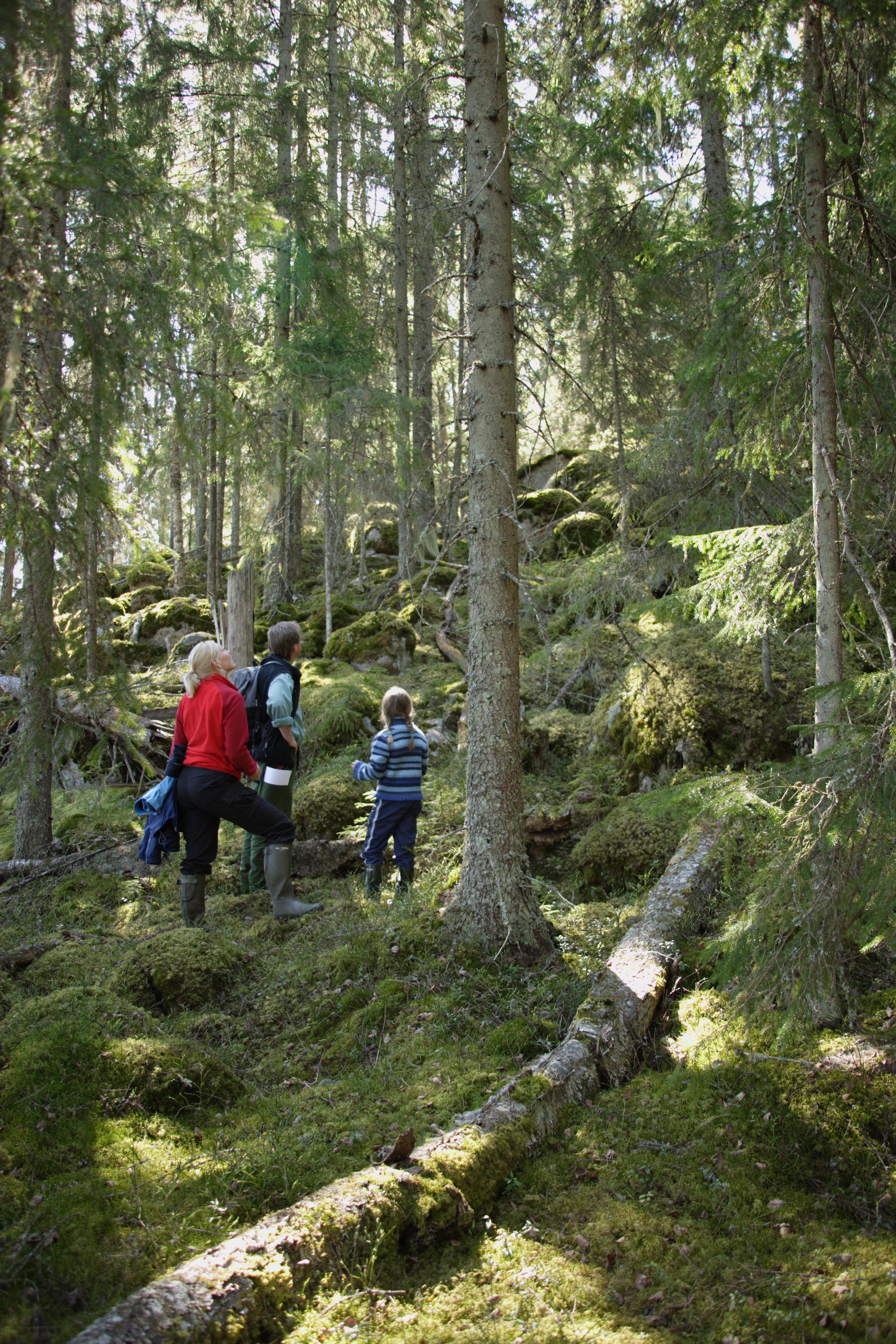 • Beskrivning: Trollberget, familj i skogen Ekopark Färna
