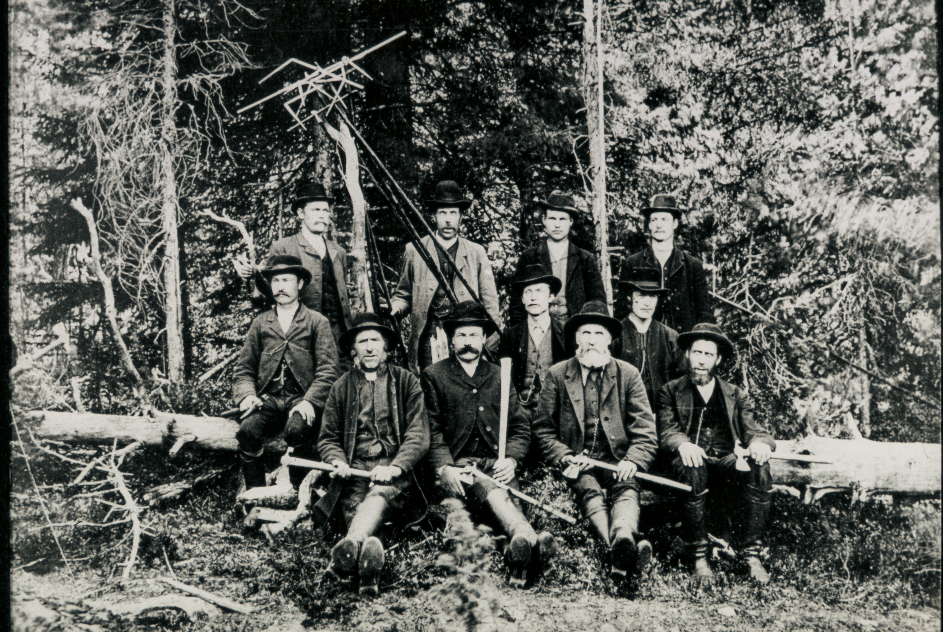 - Beskrivning: Stämplingslag, stämpelyxor, skogsarbetare