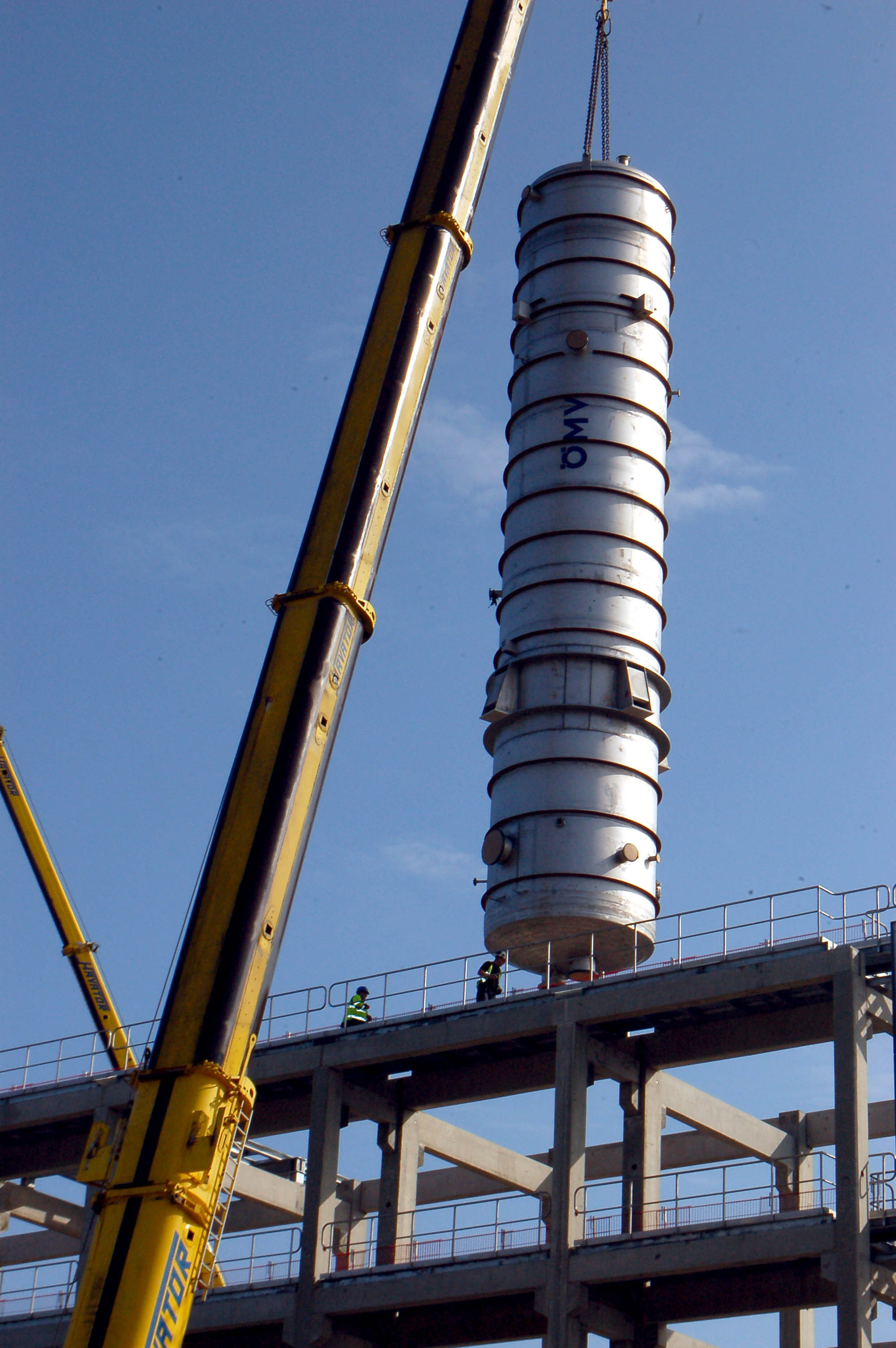- Beskrivning: SunPine, lyft av fraktioneringskolonnen som blir hjärtat i biodieselfabriken