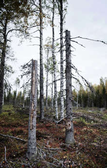 Beskrivning: Barrträd, Hygge, Hyggligt avverkat, träd, avverkning, Forum Sveaskog nr 5 2013, vackert hygge, naturvård.
