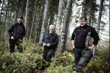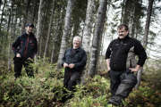 Beskrivning: Gruppfoto Lars Risén, Jan Forsström, Fredrik Risén, Bror Olofsson och Anders Nenzén, Hyggligt avverkat, Forum Sveaskog nr 5 2013, vackert hygge, naturvård.