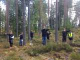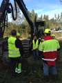 Beskrivning: Skoglig grundkurs, utbildning för icke-skogligt utbildade på Sveaskog, RO Södra Bergslagen, kollar på skogsmaskin, avverkningsmaskin