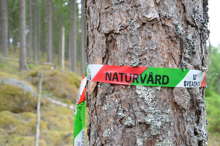 Beskrivning: Naturvårdstejp, tejp, naturvård, bark, snitsel