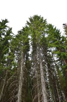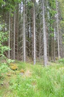 Beskrivning: Granbarkborreangripna träd, vindfällen