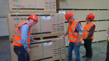 Beskrivning: Matthias Markwort med det norrbottniska grantimret, Timmerleverans till Tyskland, grantimmer, leverans, I mitten av mars gick för första gången någonsin en båt från Haraholmen i Piteå lastad med grantimmer för leverans till Wismar i Norra Tyskland