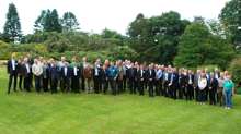 Beskrivning: Gruppfoto, Eustaformöte, Eustafor i England, de deltagande från Sveaskog var Inger Thoren Emilsson, P-O Wedin, Olof Johansson och Martin Lindell, FSC