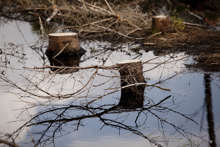 Beskrivning: Stubbar, våtmark, Ekopark Raslången