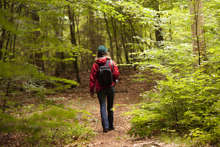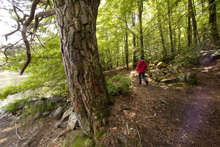 Beskrivning: Ekopark Raslången, vandring stig i skogen
