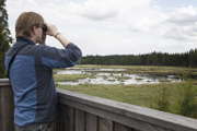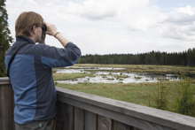 Beskrivning: Utsikt, fågelskådare, spanar med kikare
