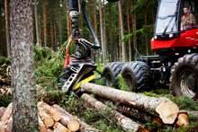 Beskrivning: skotare, skogsmaskin, timmer