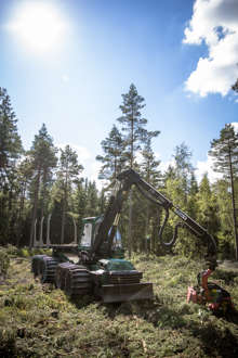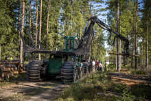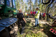 Beskrivning: Marknad och resultatområdeschefer på exkursion, teknik, utveckling, skogsbruk, avverkningsmetodik, metod, forum sveaskog nr 5 2013, information, Hans Welff, Tobias Norrbom, resultatområdeschefer, marknadsområdeschefer, RO-chefer, MO-chefer, effekter av röjning, dialog, teknikspaning pågår.