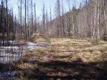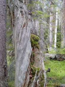 Beskrivning: Död ved, mossa, lavar, blåbärsris