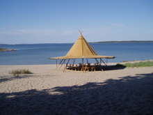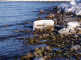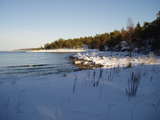 Beskrivning: Bredsand i vinterskrud, ekopark Hornslandet