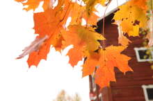 Beskrivning: Höstfärgade löv på lönn, Ekopark Ridö Sundbyholmsarkipelagen.