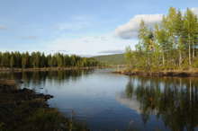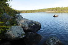 Beskrivning: Landskap, sjö, i Ekopark Rosfors