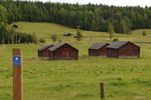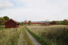 Beskrivning: Röda lador i Ekopark Ridö Sundbyholmsarkipelagen.
