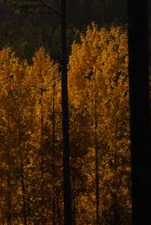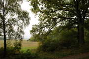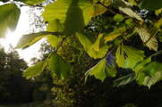 Beskrivning: Sol genom lövverket, Ekopark Ridö Sundbyholmsarkipelagen