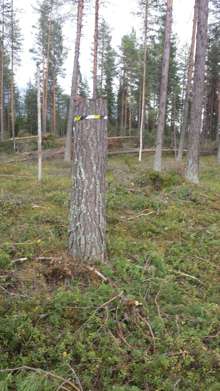 Beskrivning: Kulturstubbe på 1,3 meter för markering av kulturlämning. För många forn- och kulturmiljöer skadas, därför sker en Kulturmiljöutbildning i MO Nord.